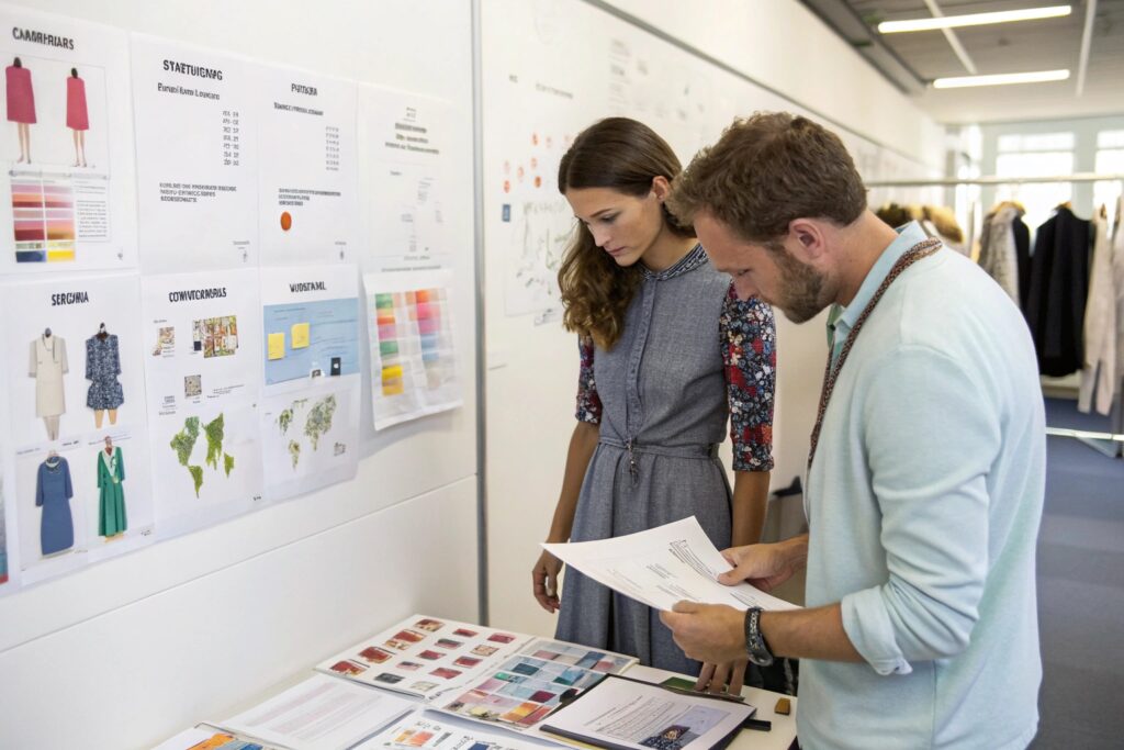 Efficiency is key. Use shared fabrics, trims, and packaging to reduce per-unit costs. Design styles that share pattern blocks or fit specs—this reduces sampling and grading effort.