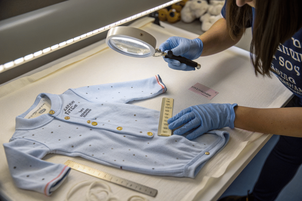 We inspect every size group with digital measuring tools, comparing each point to approved tech packs and baby growth data. We also verify labels for clarity and age accuracy.