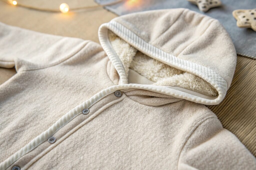 Winterwear for babies must combine warmth, breathability, and softness. That limits your options to certain fabrics and construction styles.